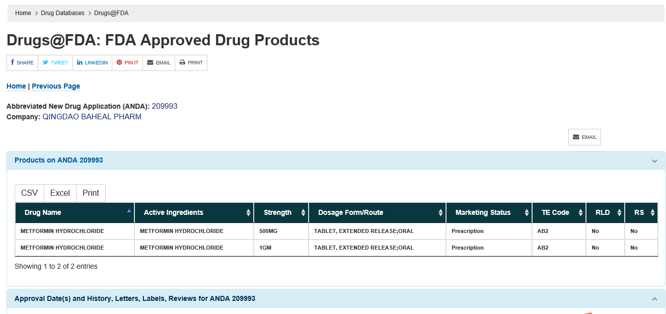 hth网页版在线登录盐酸二甲双胍缓释片(渗透泵型) 获得美国FDA上市批准